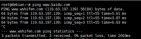 4.Ping www.baidu.com测试网络连通性
