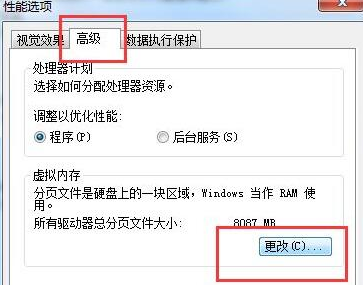 4、再点击“高级”下的虚拟内存“更改”